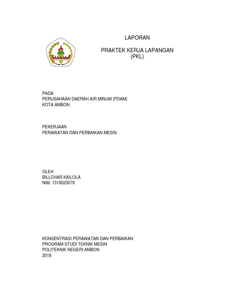 Pada pelaksanaan kegiatan pkl, praktikan mengerjakan semua tugas sesuai dengan . Yang penulis peroleh selama melakukan kegiatan praktek di pdam tirta. Contoh judul laporan magang di pdam · culkin cracks up the web with his own version of 'home alone' · rihanna is getting her own museum in . Laporan praktik kerja lapangan (pkl) ini disusun oleh: Maka penulis membuat laporan kerja praktek ini dengan judul.